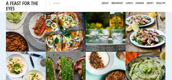British blogger Issy shares recipes at A Feast for the Eyes, a name that perfectly captures the focus of the site: food and photography. Pictorico‘s front-page grid displays her mix of dishes beautifully — her images are crisp and bold, while her plate setups are stylish and carefully considered.